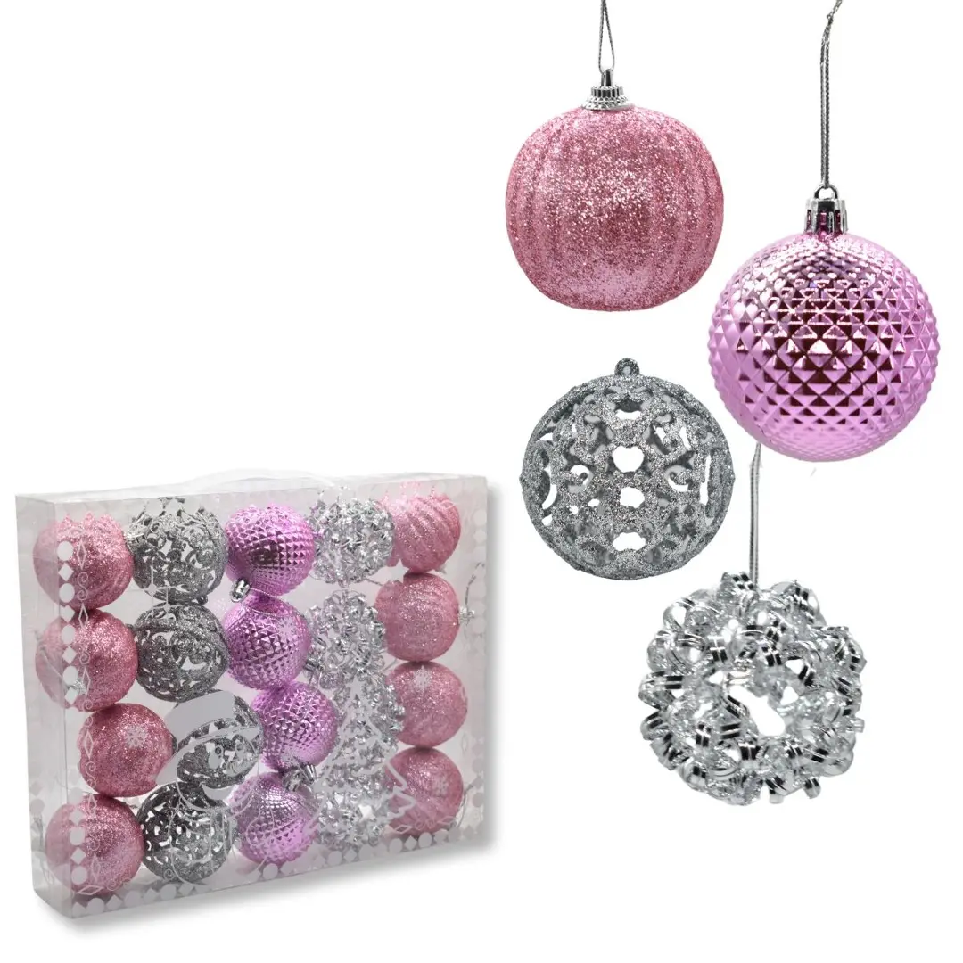 ✨ Bolas de Navidad Rosa y Plateado – Pack x20 (6 cm) ✨