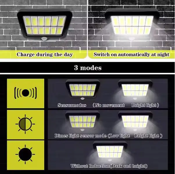Este foco LED de 40W con sensor día/noche es la solución perfecta para iluminar patios, jardines, entradas o cualquier zona al aire libre sin necesidad de cableado ni consumo eléctrico. Funciona con energía solar, cuenta con sensor automático y se adapta a todas tus necesidades gracias a su control remoto con 3 modos de luz.