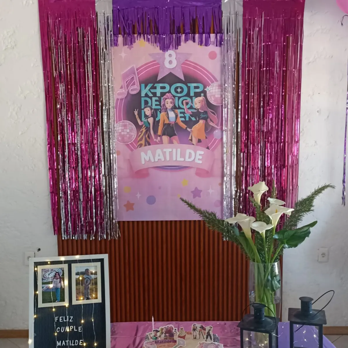 Decorá tu celebración con un fondo temático listo para usar, ideal para colocar detrás de la mesa de torta y lograr un ambiente hermoso sin gastar de más. ✨