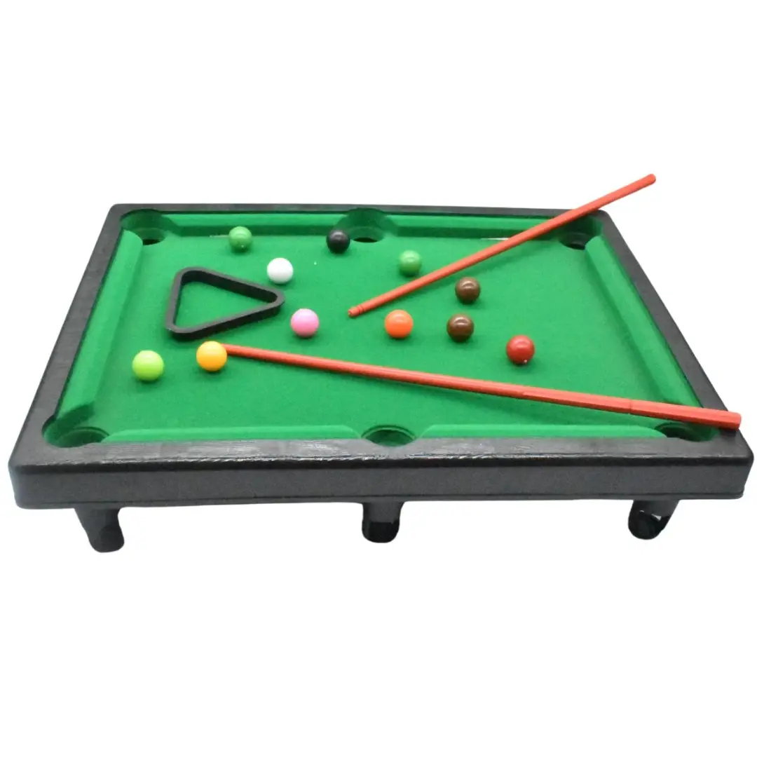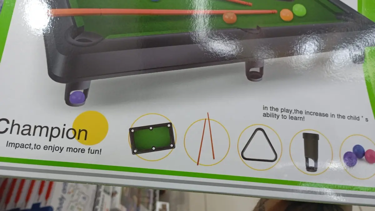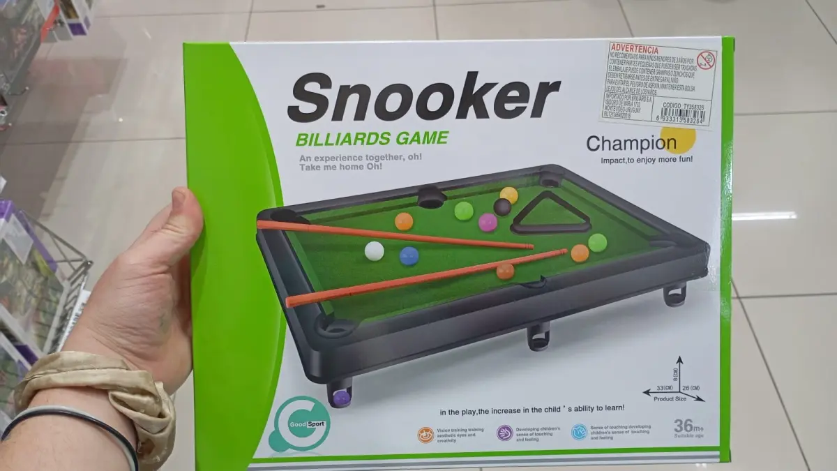 Incluye: 6 patas encastrables, 2 tacos, bolas y triángulo.