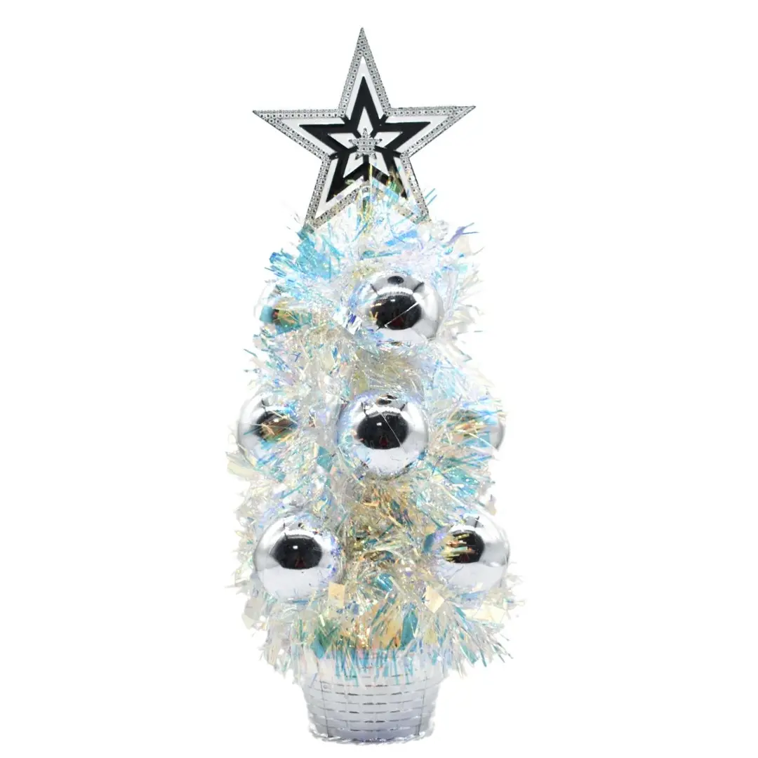Perfecto para escritorios, mesas, estantes o rincones pequeños, este mini árbol de Navidad decorado es una opción práctica y encantadora para sumar espíritu festivo sin ocupar mucho espacio. Viene listo para usar: solo lo colocás donde quieras y ya transforma el ambiente.