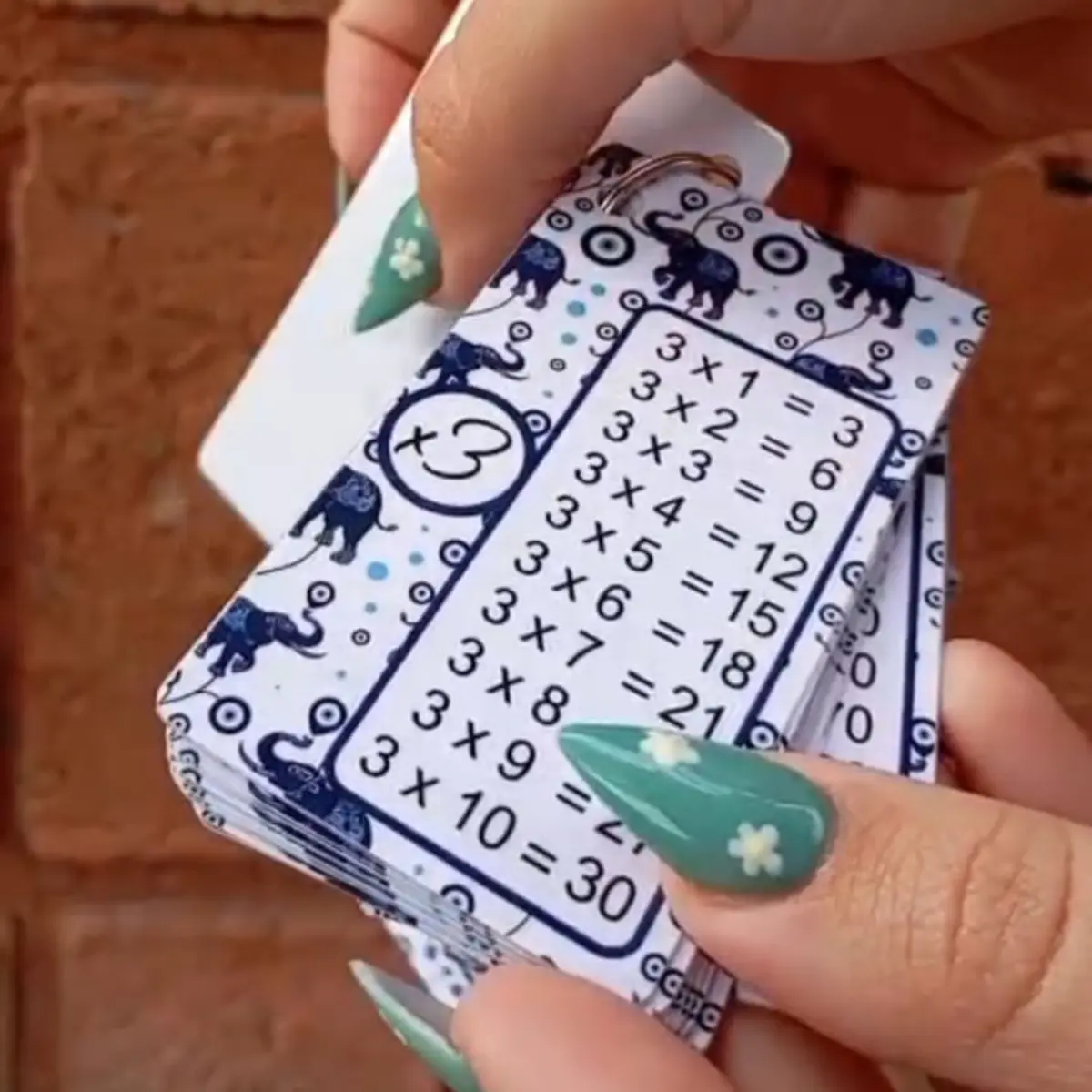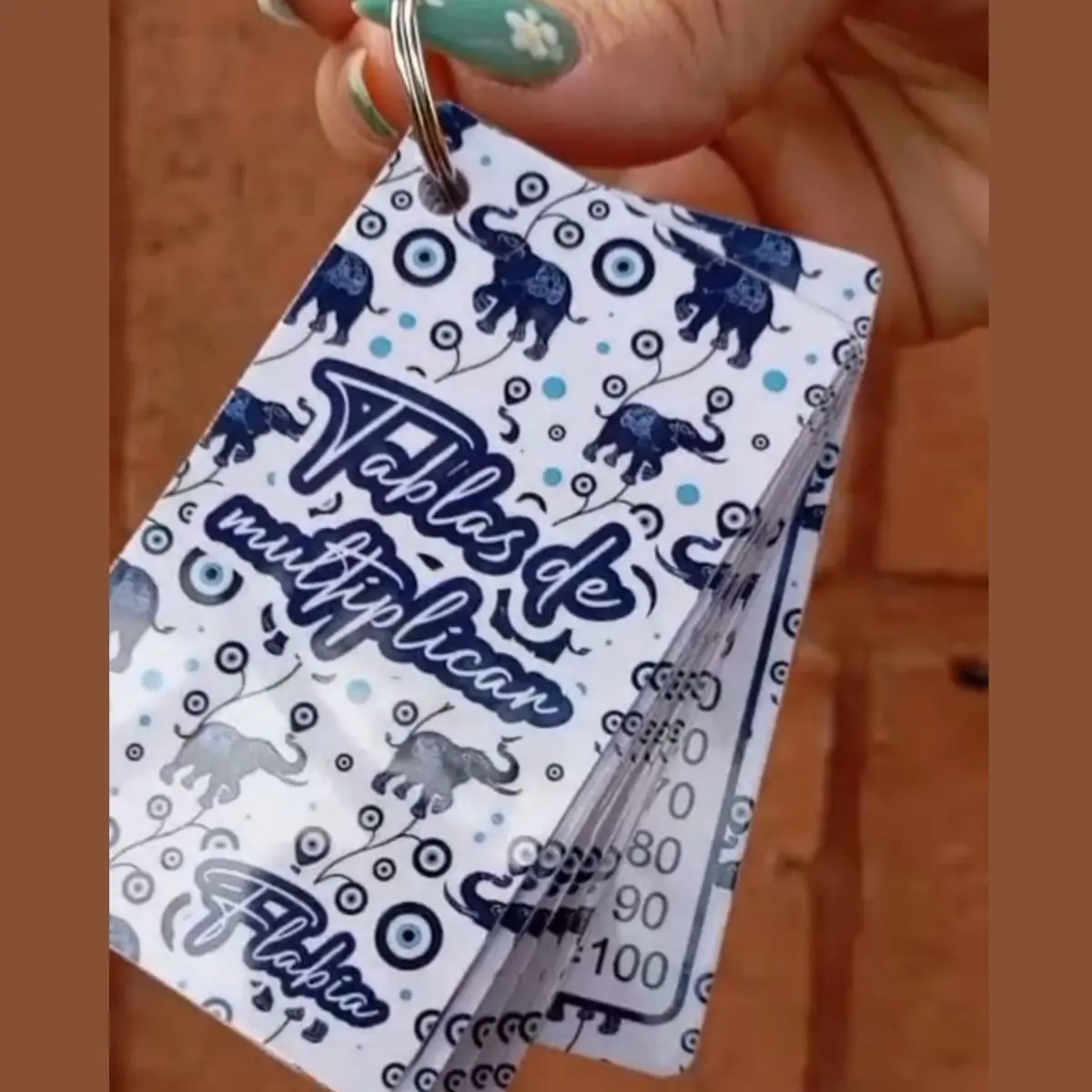 Cada tabla está en una tarjeta individual, unidas con una argolla resistente, para que puedas transportarlas cómodamente y cambiar de una a otra de manera sencilla. Así, el aprendizaje se vuelve divertido, organizado y accesible en cualquier lugar.