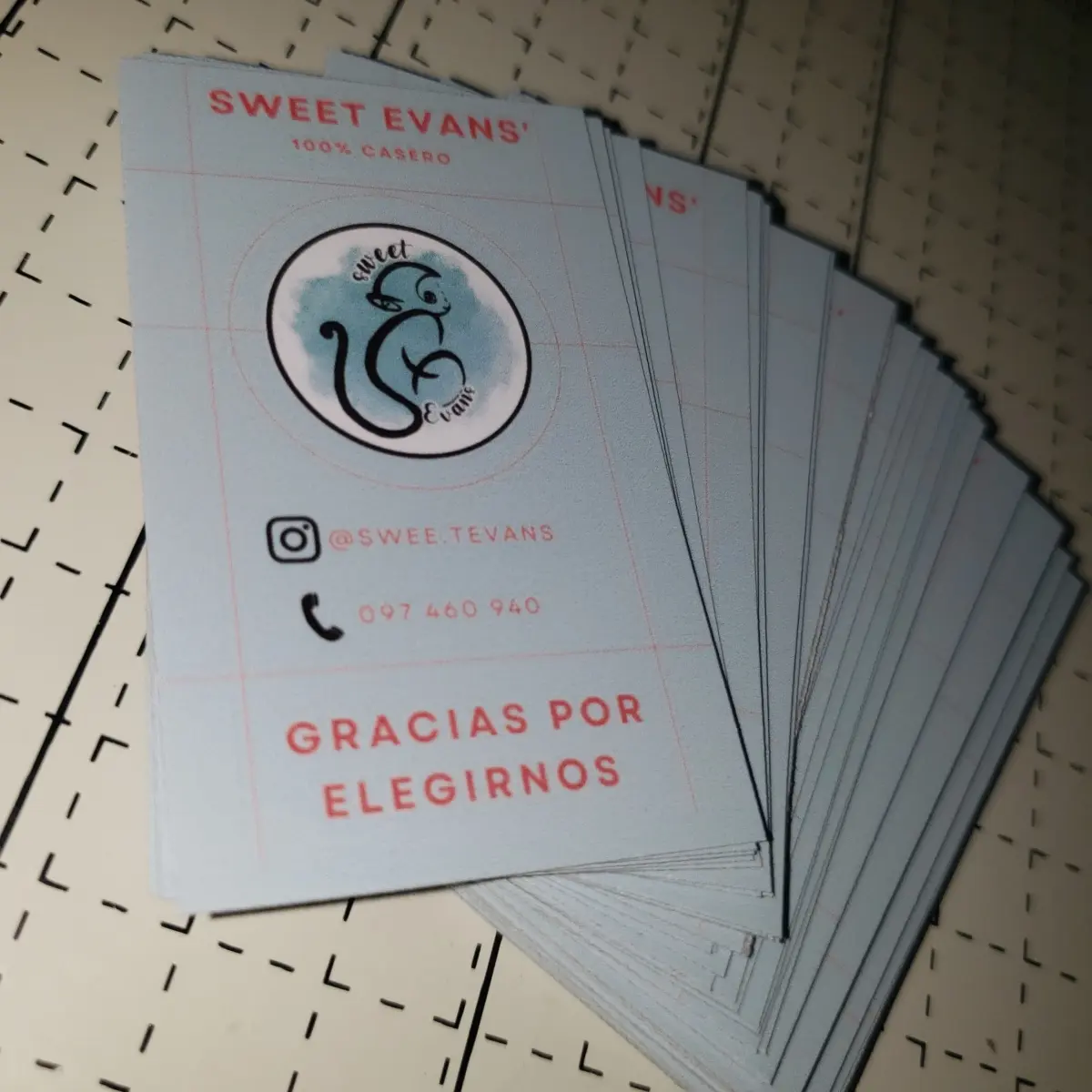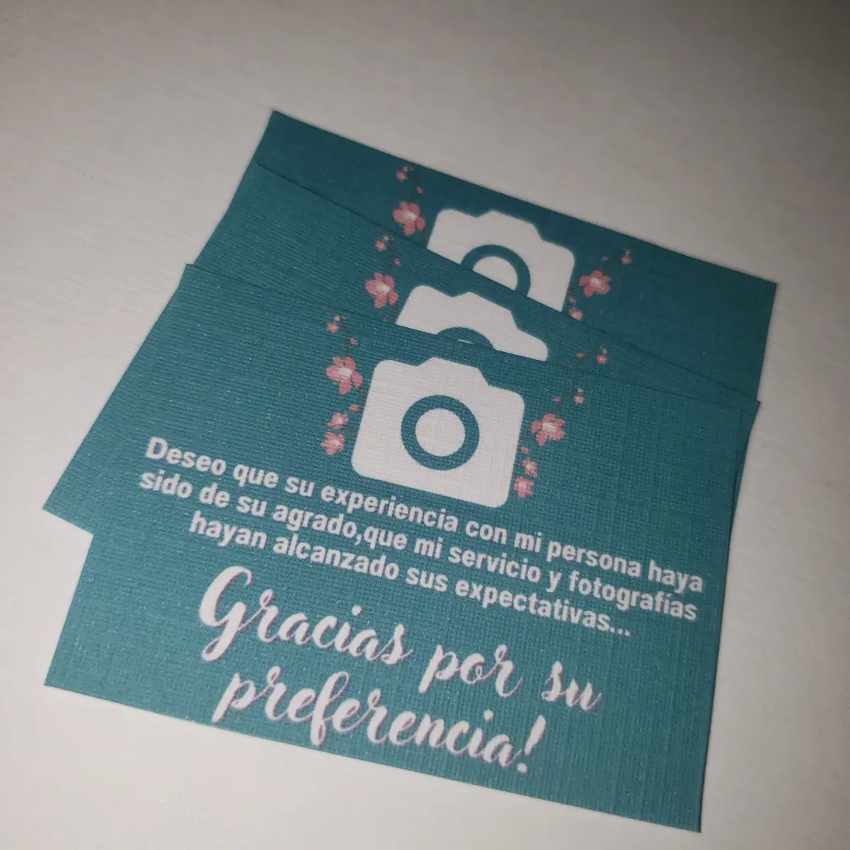 Están impresas en papel opalina de excelente calidad, con opción simple o doble faz, según la cantidad de información o el impacto visual que desees lograr. El diseño va totalmente de regalo y se adapta completamente a tu imagen: logo, paleta de colores, tipografía e incluso una imagen o fondo distintivo si así lo querés.