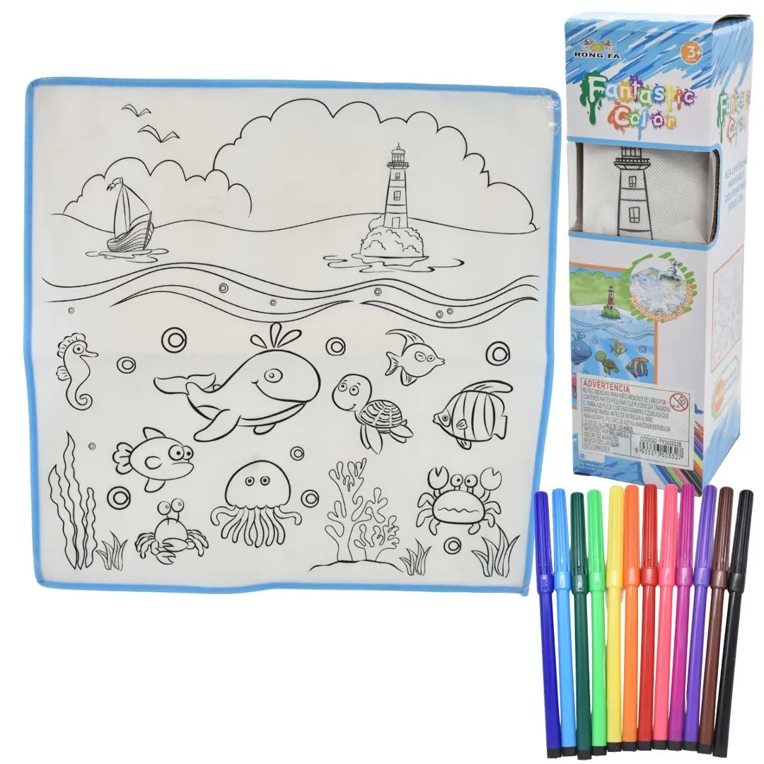 Tela para colorear.Medidas: 50x50cm.Incluye marcadores de colores.Lavable y reutlizable. Material de tela de alta calidad, no se rompe.En caja.